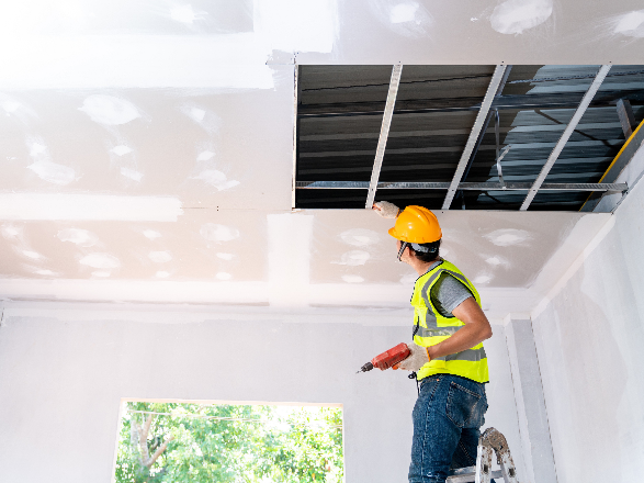 Many gypsum ceilings have texture (orange peel, knockdown, or a subtle roller texture). Matching it is what makes the repair truly professional.