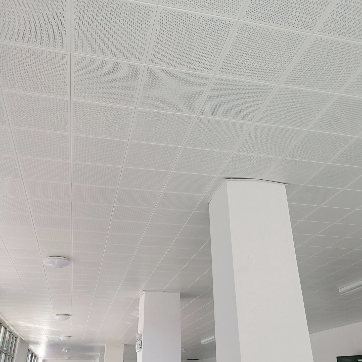 Many Aluminum Ceiling systems feature tiny holes for sound absorption. When cleaning these, avoid using a soaking wet sponge, as water can get trapped in the perforations and dampen the acoustic backing material. Instead, use pressurized air to blow out dust from the holes, then wipe the surface with a barely damp cloth. Keeping these holes clear is essential for the panel's performance and its moisture resistant properties.